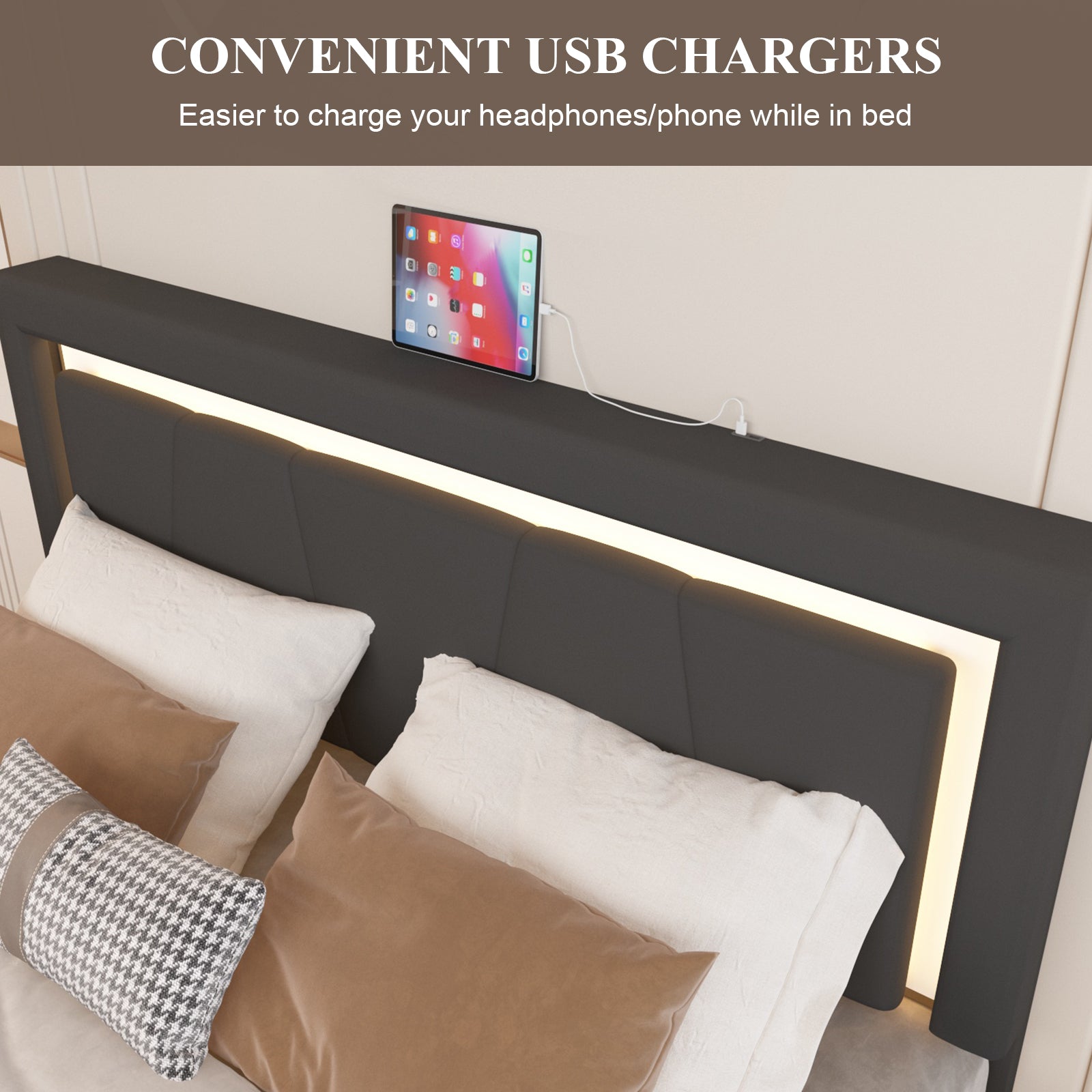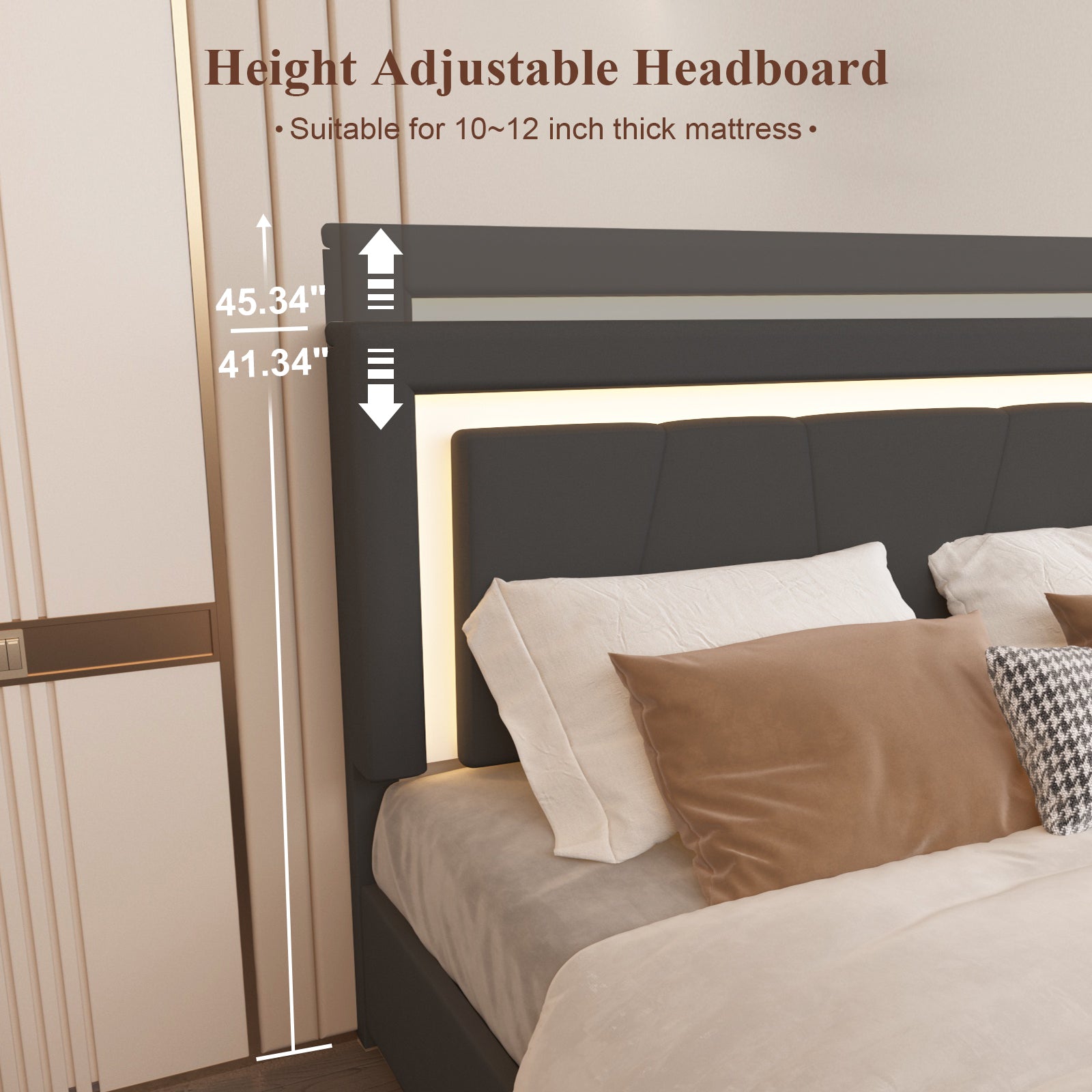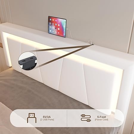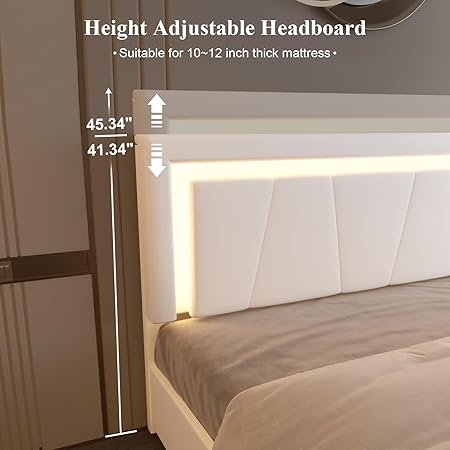 【Indulge in Comfort, Adjustable Premier Headboard】 Our upholstered headboard is meticulously crafted with soft PU leather and high-density sponge, offering a snug and comforting backrest. It showcases an adjustable LED Headboard, perfect for reading.